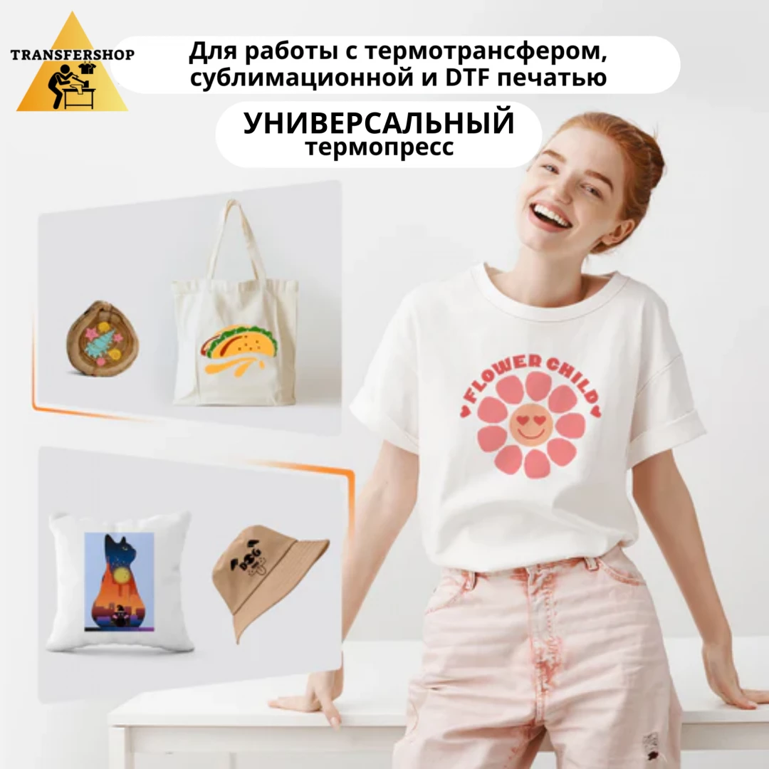 Предназначен для переноса термопленок, сублимационной и ДТФ печати.