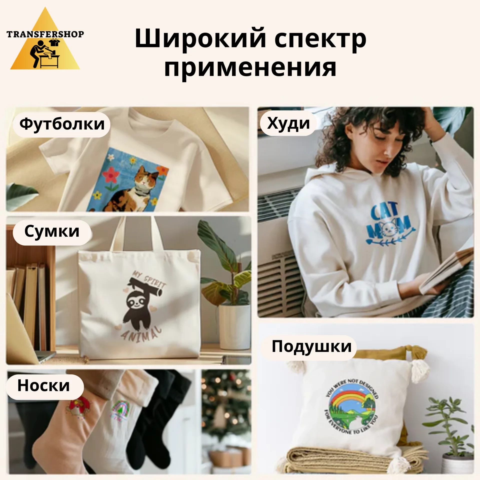 - текстиль: футболки, толстовки, худи, спецодежду, детскую и спортивную одежду и др;